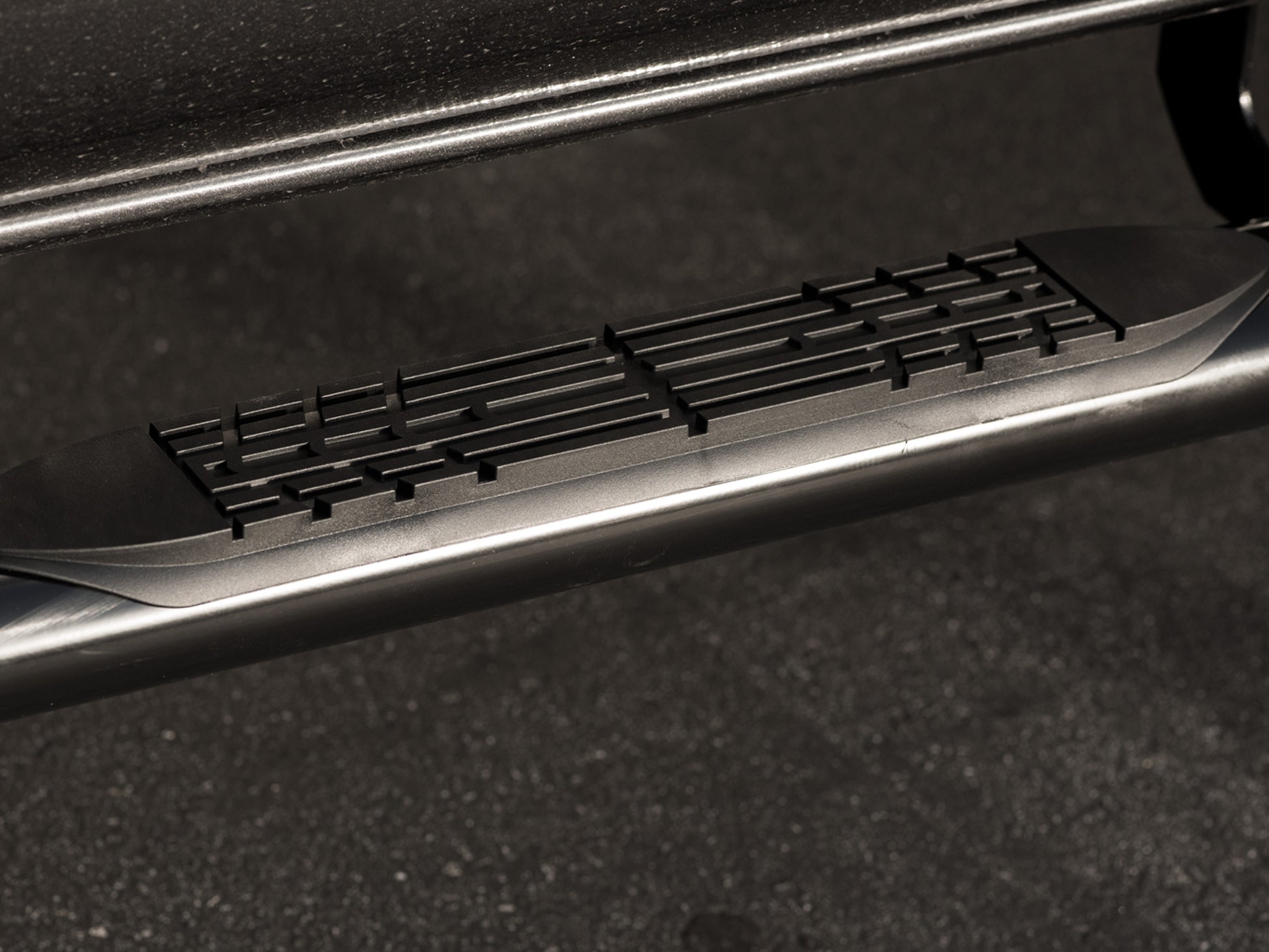 Armordillo® 4" oval side step bars will give you the best of both worlds – an ergonomic and attractive design, and a durable construction. Oval shaped for added resistance to bending and flexing, these side steps feature anti slip ribbed pads for convenient and safe access to your cab in dry and wet weather conditions. Each step is engineered and designed to your exact vehicle specifications, providing an extended tire coverage for more aggressive wheel and tire fitment, so the most accurate fit is guaranteed with no kind of drilling or welding required.