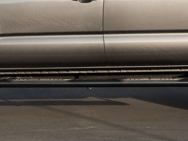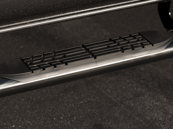 Armordillo® 4" oval side step bars will give you the best of both worlds – an ergonomic and attractive design, and a durable construction. Oval shaped for added resistance to bending and flexing, these side steps feature anti slip ribbed pads for convenient and safe access to your cab in dry and wet weather conditions. Each step is engineered and designed to your exact vehicle specifications, providing an extended tire coverage for more aggressive wheel and tire fitment, so the most accurate fit is guaranteed with no kind of drilling or welding required.