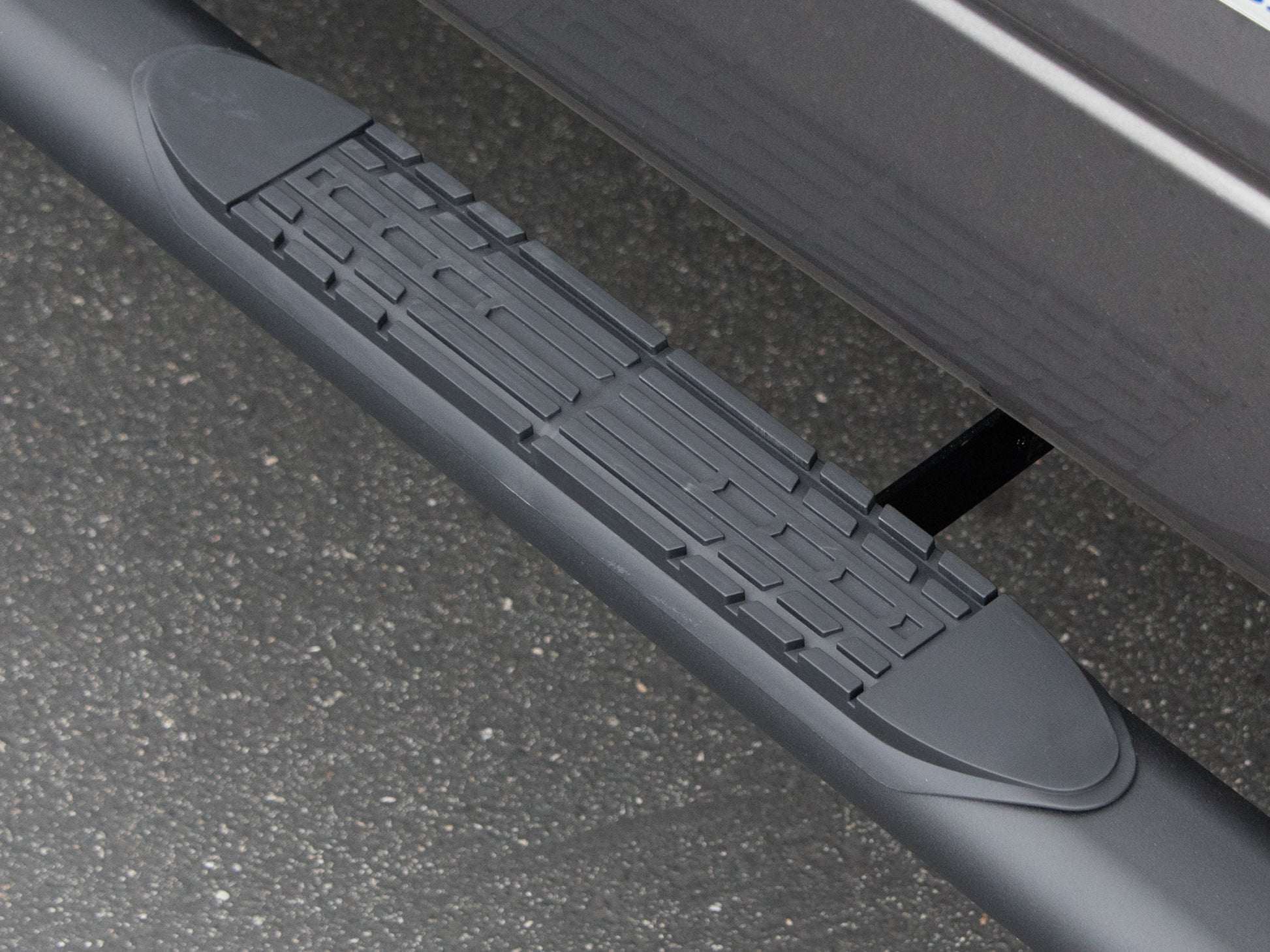 Armordillo® 4" oval side step bars will give you the best of both worlds – an ergonomic and attractive design, and a durable construction. Oval shaped for added resistance to bending and flexing, these side steps feature anti slip ribbed pads for convenient and safe access to your cab in dry and wet weather conditions. Each step is engineered and designed to your exact vehicle specifications, providing an extended tire coverage for more aggressive wheel and tire fitment, so the most accurate fit is guaranteed with no kind of drilling or welding required.