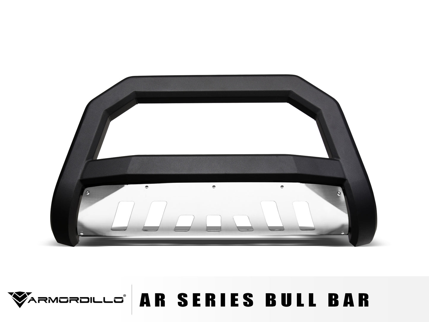 Armordillo® AR Series Bull Bar, If you’re looking to protect the front end of your rig against the elements and impact of minor collisions without sacrificing the look of your new stylish front grille, the AR series bull bar with its aggressive angular design is just the thing you need. Unlike regular tubular bull bars, Armordillo® AR series bull bars will not hide your front grille or a large portion of your front bumper, while keeping the front-end protection at a high level. Plus, the mesh styled skid plate doesn’t restrict airflow to the radiator and engine preventing its overheating. Arm your off-road beast with Armordillo®, an industry-leading manufacturer of top-of-the-line truck accessories and parts. Years of ingenious engineering and passion for the world’s toughest trucks has been poured out into providing hardcore off-road products designed to turn your beefy companion into the embodiment of sleekness, edginess, and aggression. Armordillo offers bull bars, step bars, fender flares, truck bed rails, trailer hitches and some of its unique products – Pre-Runner bumper guards, AR drop steps, lockers, and bull bars. You can count on Armordillo to bring you impeccably strong and durable parts combining brutal appeal with high-end elegance. The brand’s bull bars, grilles, fender flares and side step bars are a sure way to instantly give your off-road warrior a more sharp, mean look along with unmatched comfort and protection against the rage of the trails. So, if you are looking to improve your vehicle’s stance and fortify its defenses to own the dust with confidence, Armordillo is the answer to all your needs.