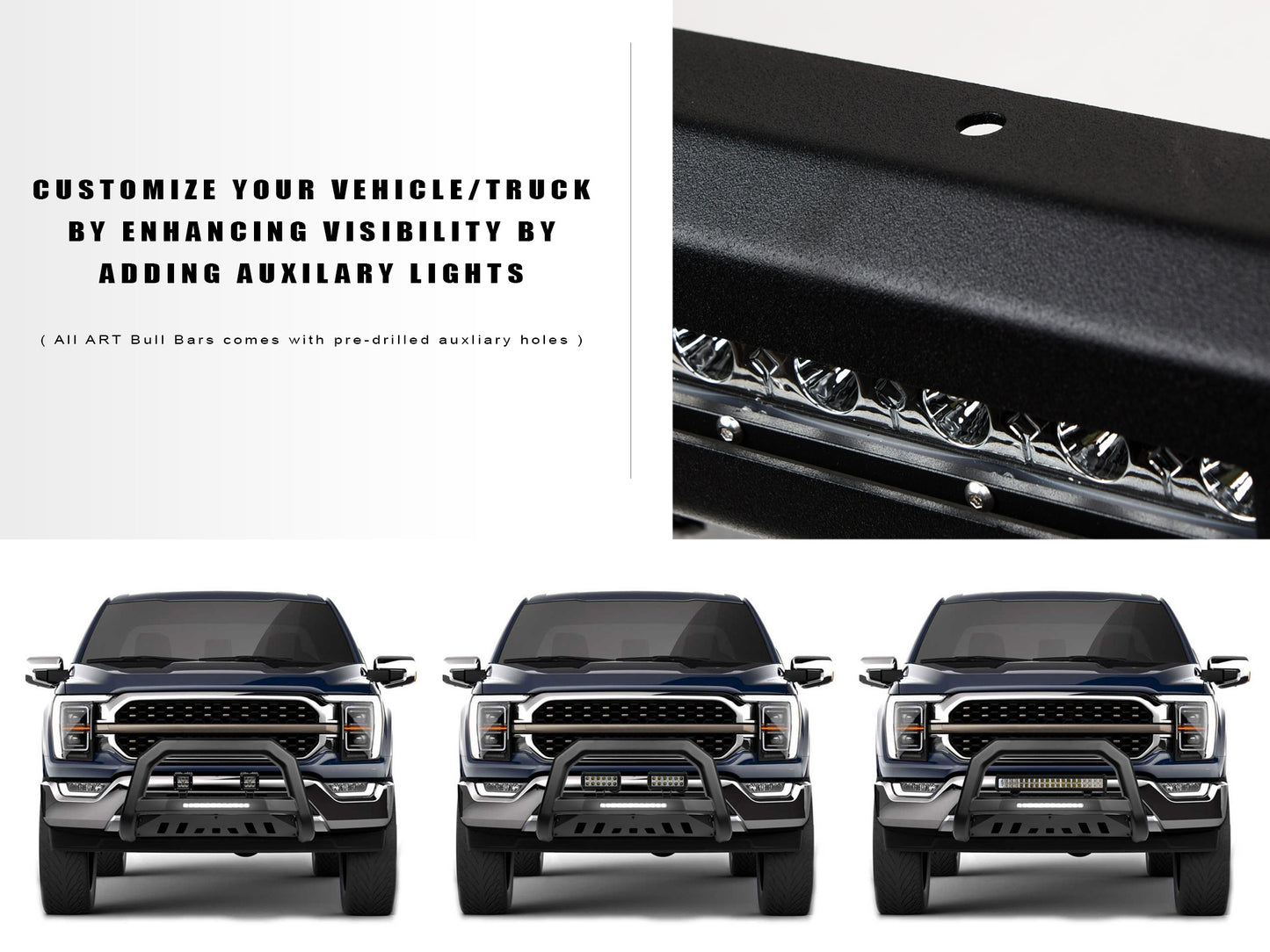 • Pre-Drilled holes for Auxiliary lights