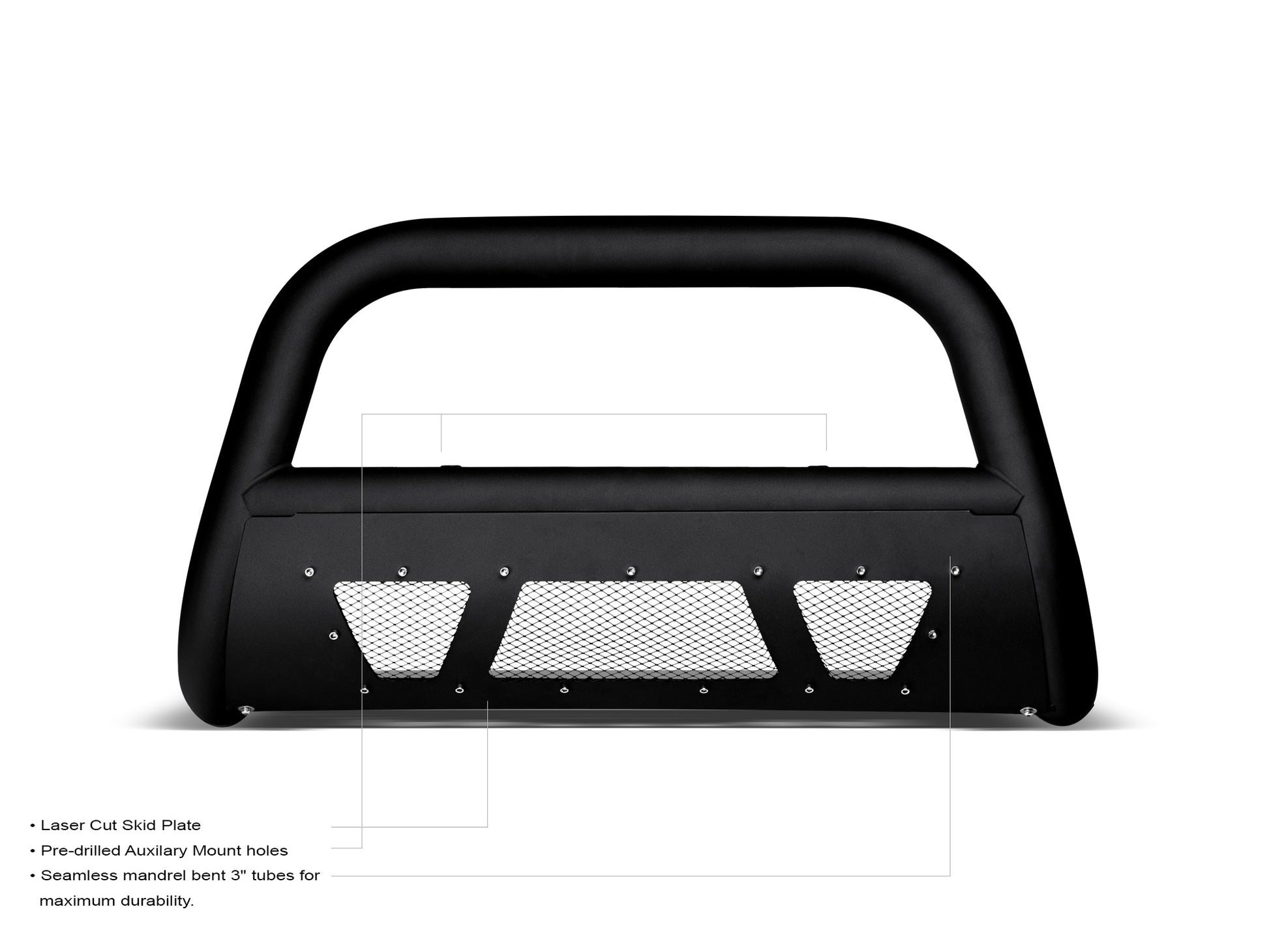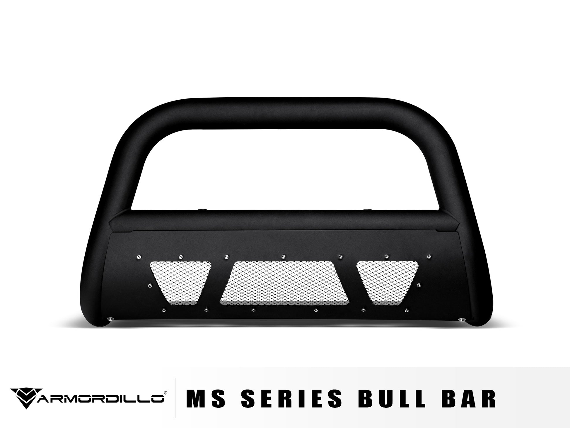 Armordillo® MS Series Bull Bar. The MS series matte black bull bar provides robust protection for your front grille as well as the center and underside of your front bumper, while not hiding their great looks behind a massive skid plate. The bull bar features a stylish mesh skid plate, which ensures great protection from the elements without compromising on the airflow.