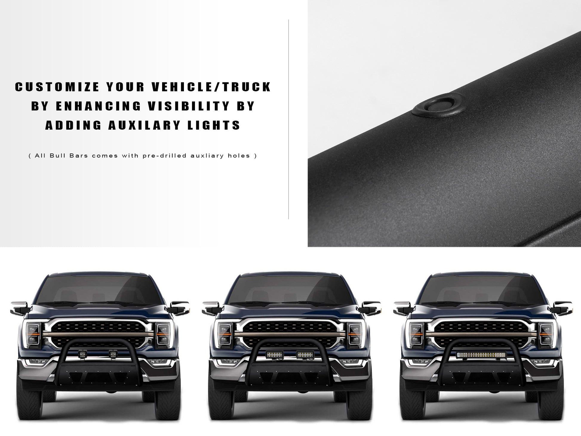 Armordillo® MS Bull Bar, If you’re looking to protect the front end of your rig against the elements and impact of minor collisions without sacrificing the look of your new stylish front grille, the MS series bull bar with a mesh styled skid plate is just the thing you need. Unlike regular bull bars with a solid skid plate, the Armordillo bull bar does not hide your front grille or a large part of your front bumper, while keeping the front-end protection at a high level. Plus, the mesh styled skid plate doesn’t restrict airflow to the radiator and engine, preventing its overheating. Arm your off-road beast with Armordillo®, an industry-leading manufacturer of top-of-the-line truck accessories and parts. Years of ingenious engineering and passion for the world’s toughest truck has been poured out into providing hardcore off-road products designed to turn your beefy companion into the embodiment of sleekness, edginess, and aggression. The brand offers bull bars, step bars, fender flares, truck bed rails, trailer hitches and some of its unique products – Pre-Runner bumper guards, AR drop steps, lockers, and bull bars. You can count on Armordillo® to bring you impeccably strong and durable parts combining brutal appeal with high-end elegance. The brand’s bull bars, grilles, fender flares and side step bars are a sure way to instantly give your off-road warrior a more sharp, mean look along with unmatched comfort and protection against the rage of the trails. So, if you are looking to improve your vehicle’s stance and fortify its defenses to own the dust with confidence, Armordillo® is the answer to all your needs.