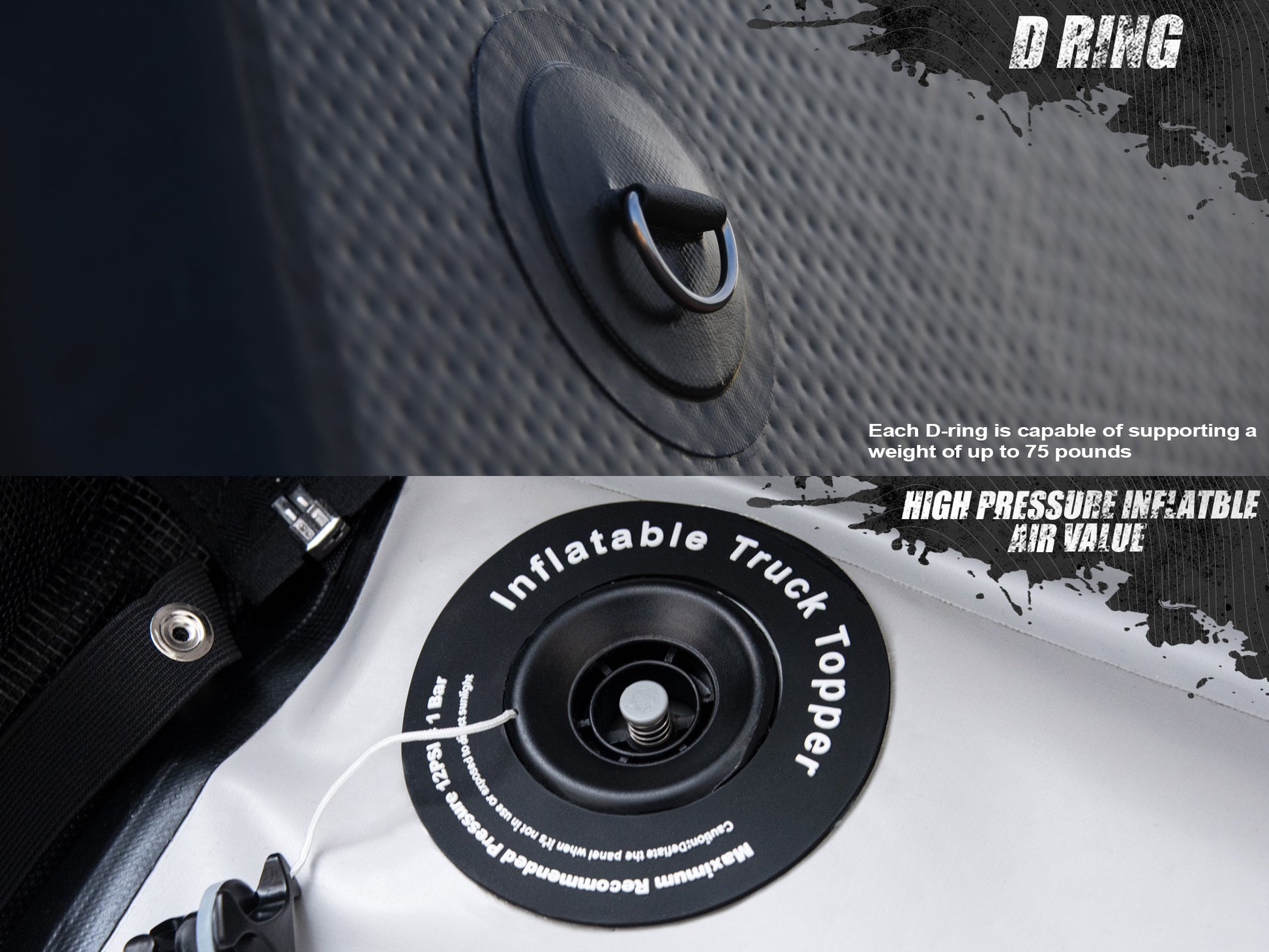 Guard your truck bed with the inflatable topper, featuring UV-protected PVC, clear vinyl windows, and D-rings for secure, organized gear.