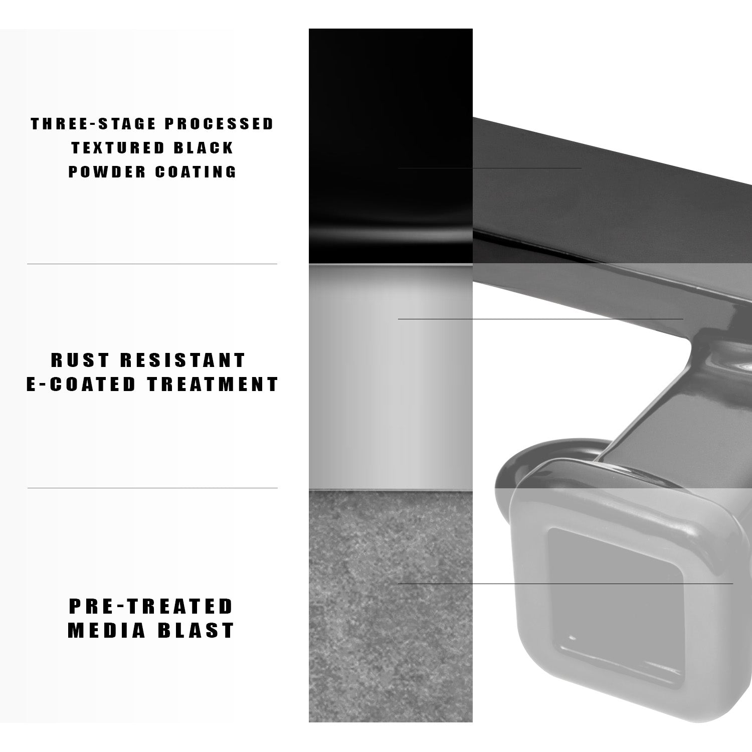 - Premium black powder coat finish to prevent against rust, chip and corrosion.