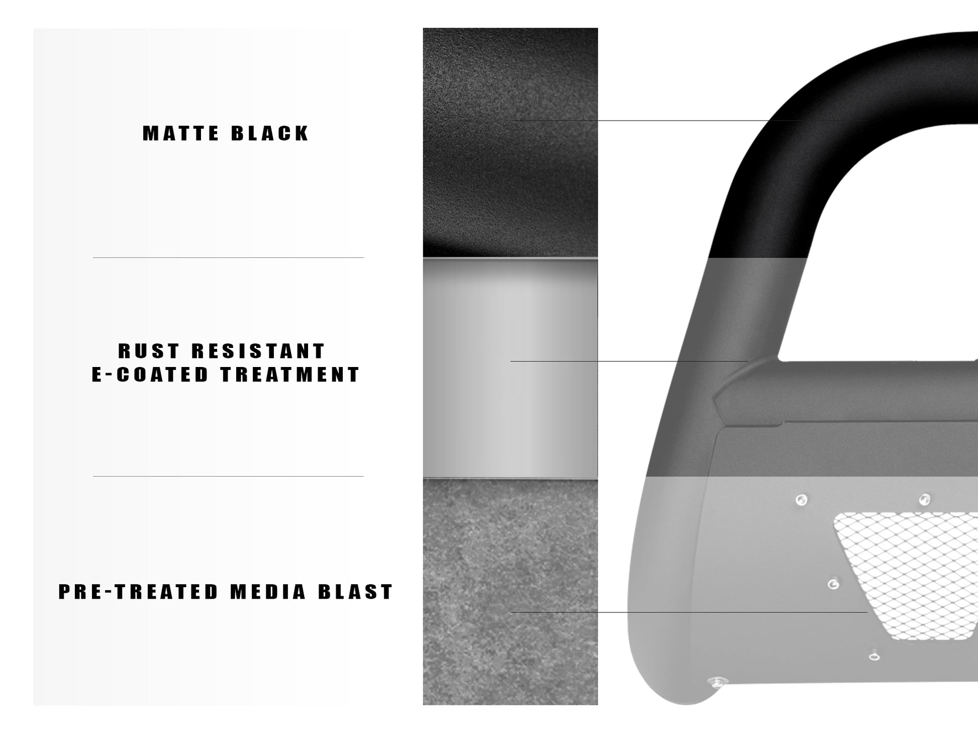 Armordillo® MS Series Bull Bar. The MS series matte black bull bar provides robust protection for your front grille as well as the center and underside of your front bumper, while not hiding their great looks behind a massive skid plate. The bull bar features a stylish mesh skid plate, which ensures great protection from the elements without compromising on the airflow.